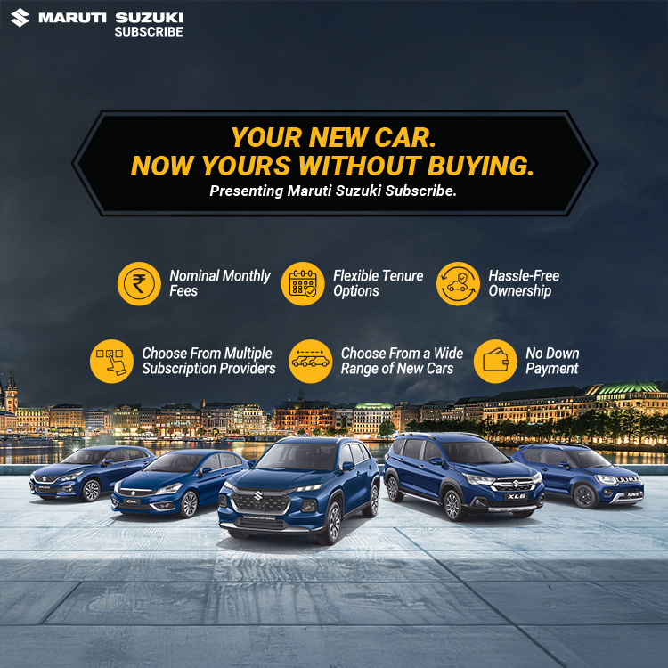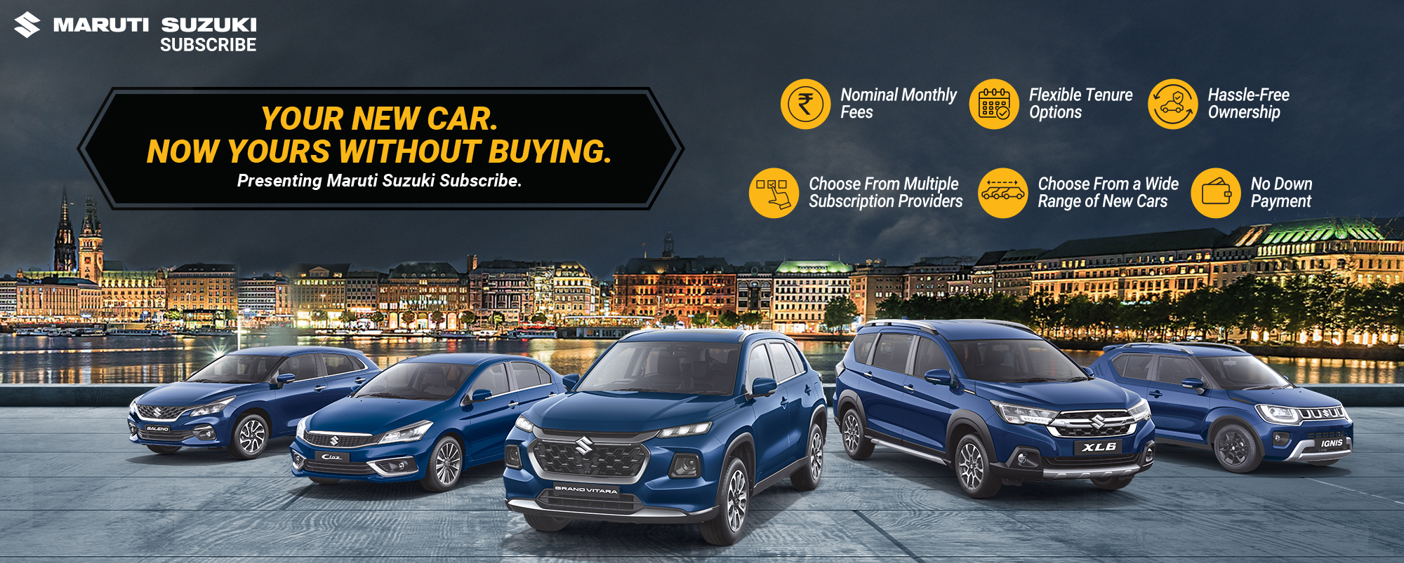 Maruti Suzuki Subscribe enables all customers to enjoy driving their preferred Maruti Suzuki cars without having to deal with all the financial responsibilities that come with owning a car.All you need to do is opt for a monthly subscription plan at a fixed monthly fee, which includes the routine maintenance and insurance costs, and choose a flexible tenure. At Jayalakshmi in, , Ongole, all Hatchback, Sedan, SUV, the MUV models line-up includes Baleno, Invicto, EVitara, Jimny, Ciaz, Ignis, Fronx, Grand Vitara, XL6. Here, you will enjoy Maruti Suzuki Subscribe benefits such as: